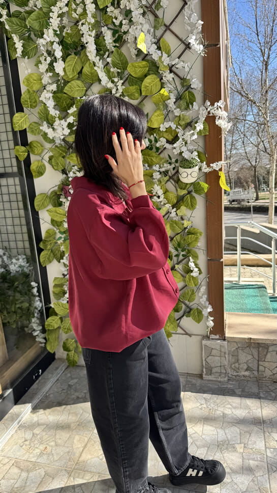 Düşük Omuz Oversize Bordo Gömlek