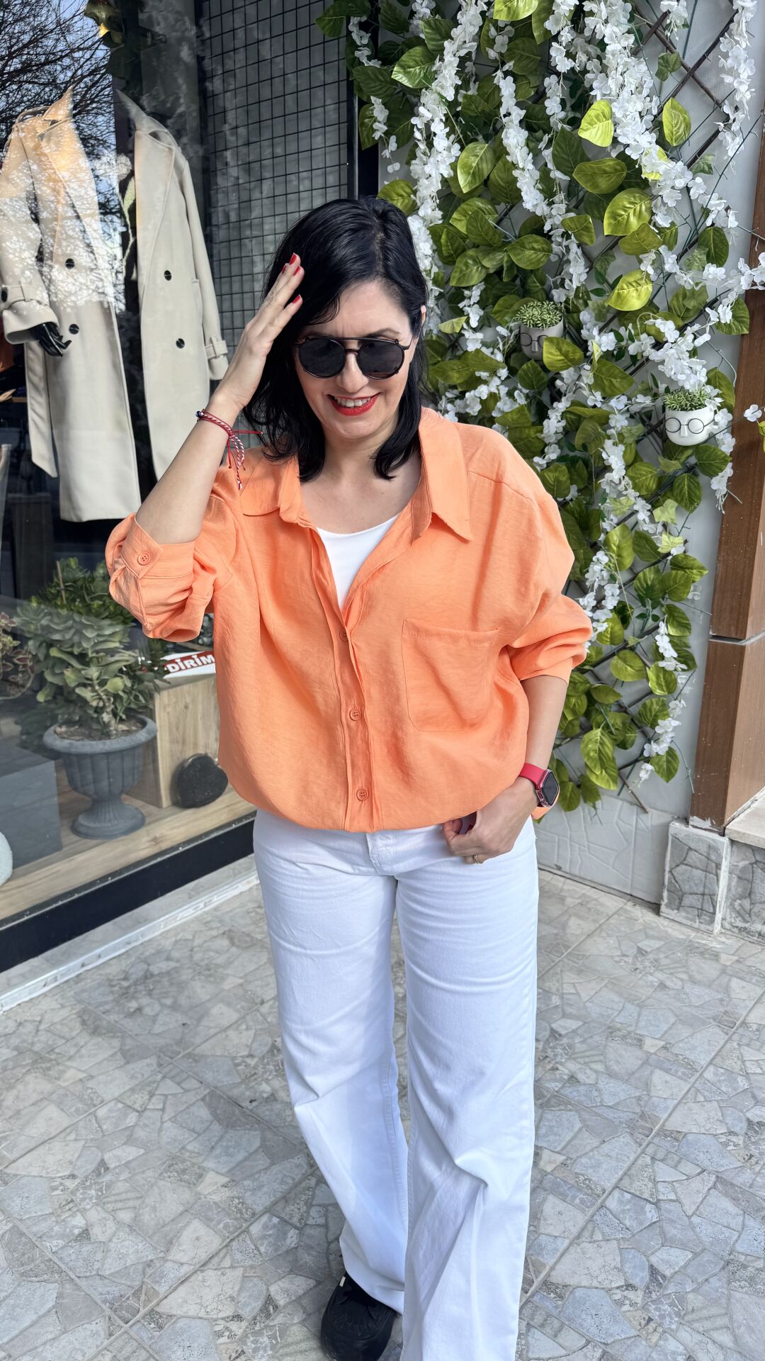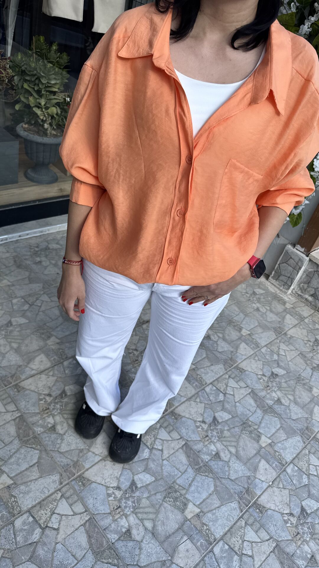 Düşük Omuz Oversize Turuncu Gömlek