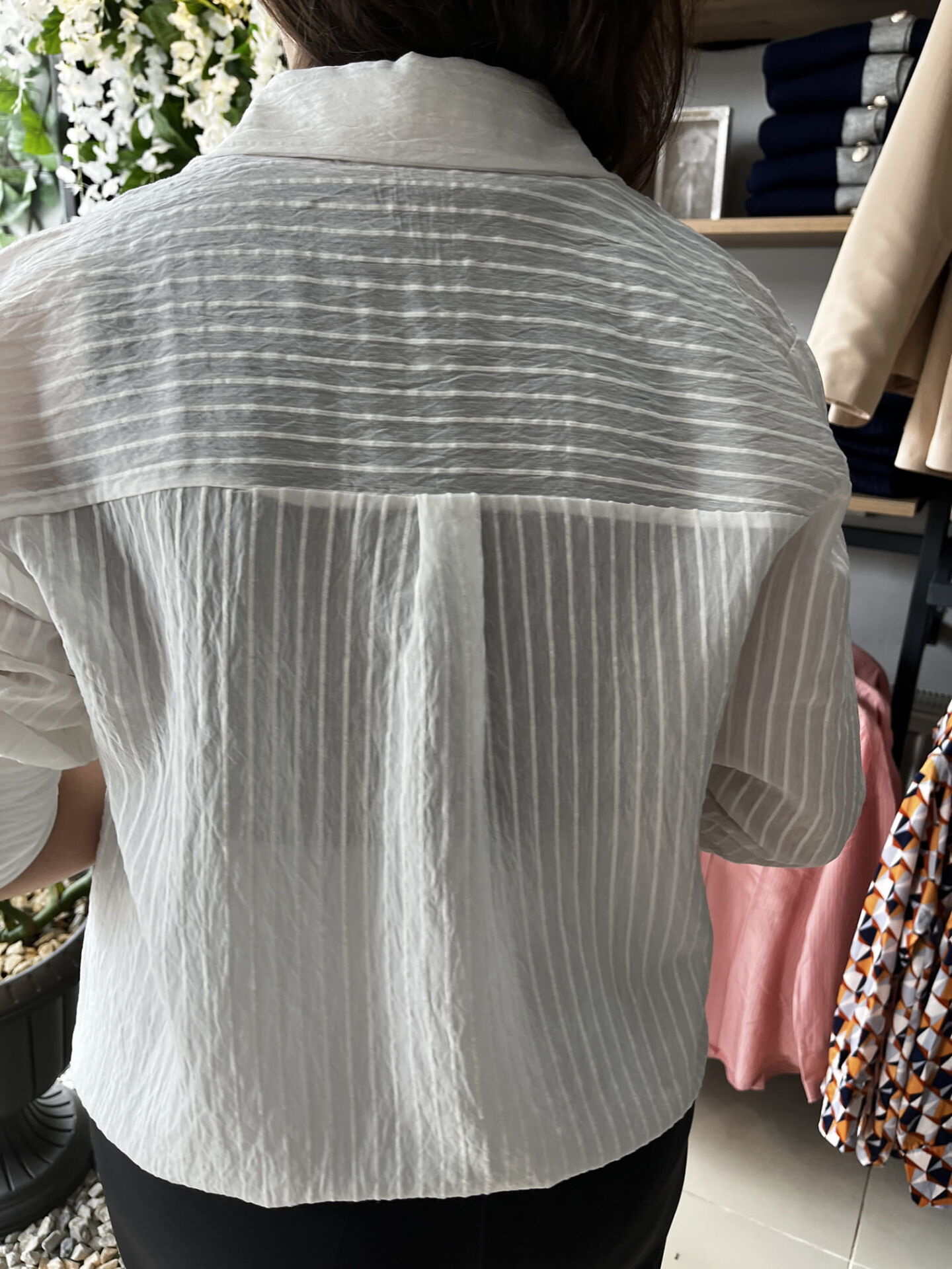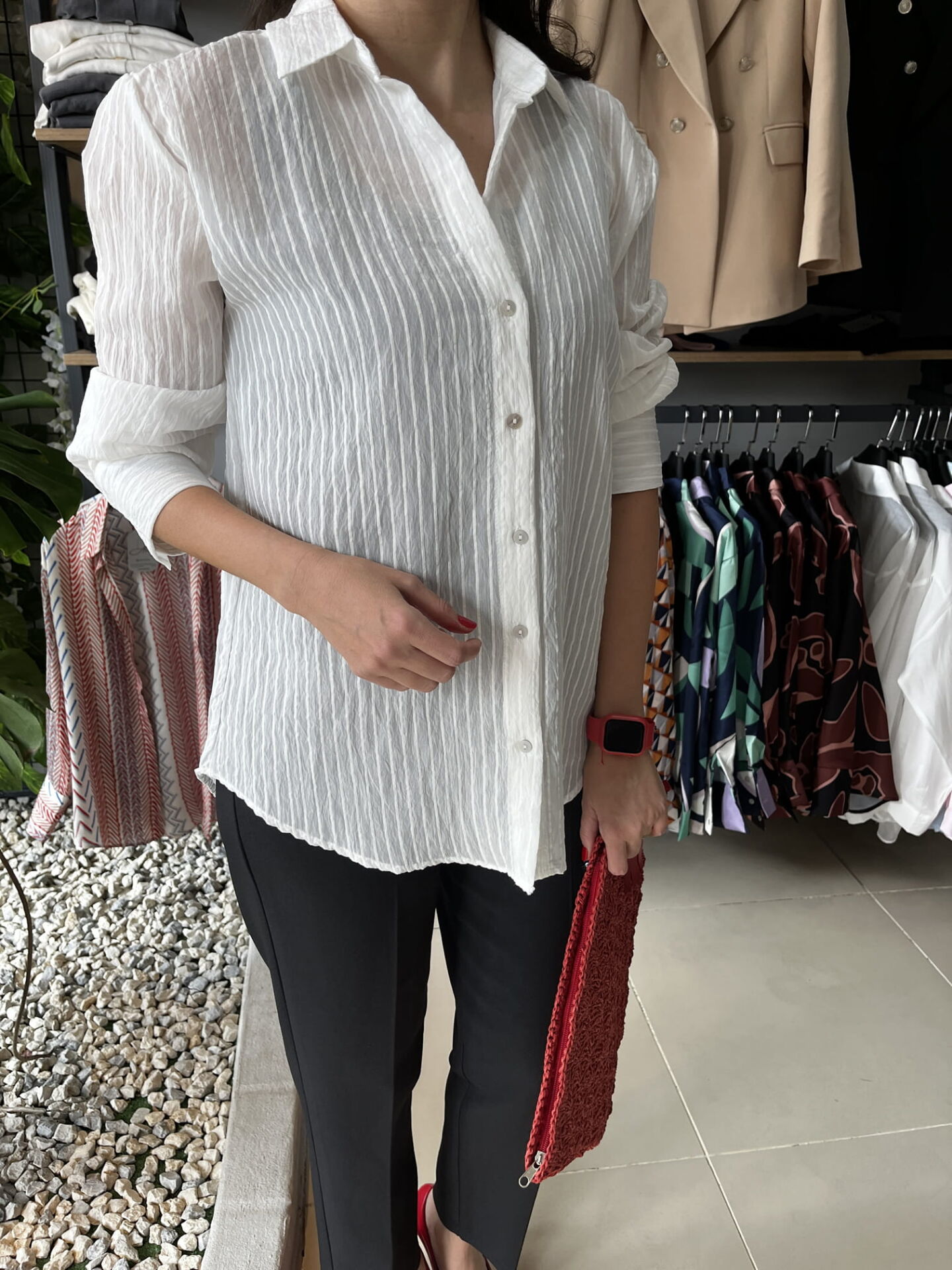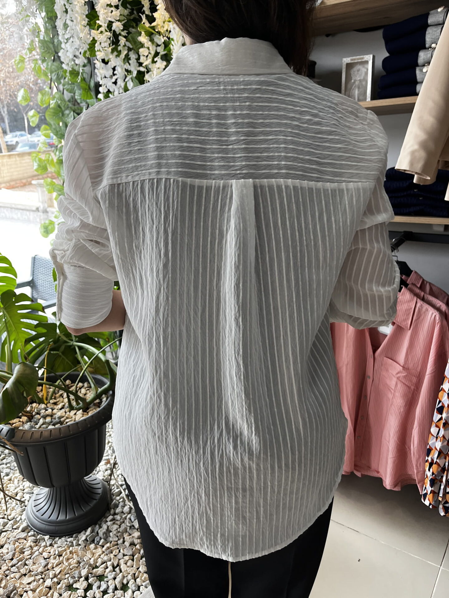 İpek Pamuk Karışımı Beyaz Çizgi Detaylı Gömlek