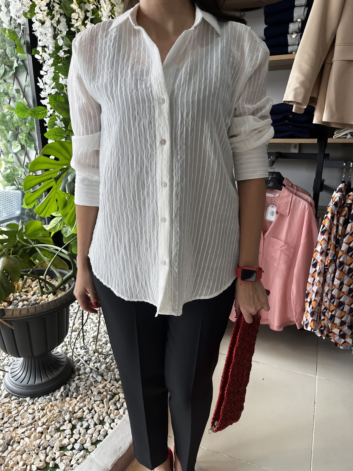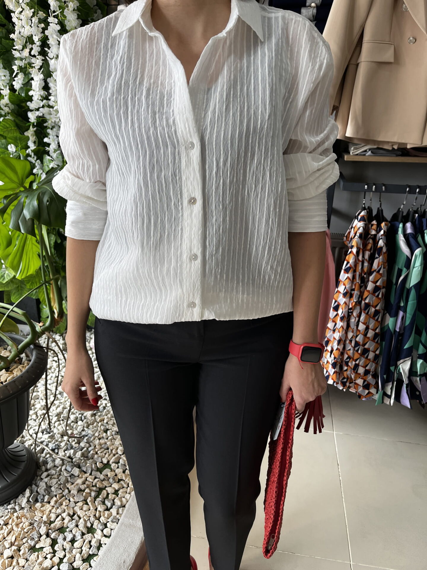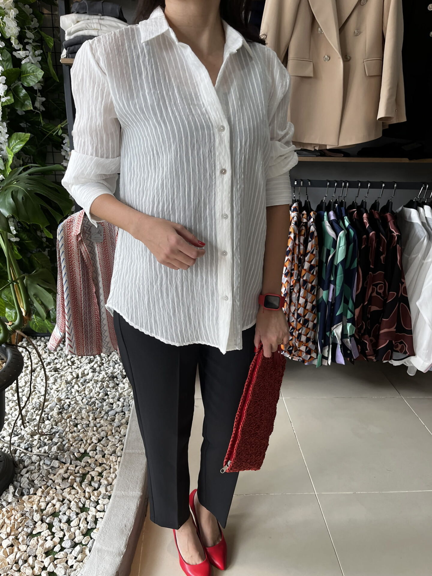 İpek Pamuk Karışımı Beyaz Çizgi Detaylı Gömlek