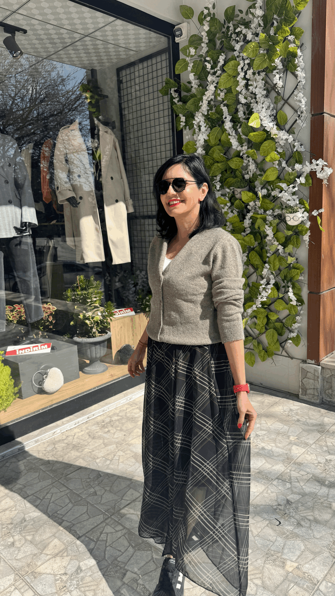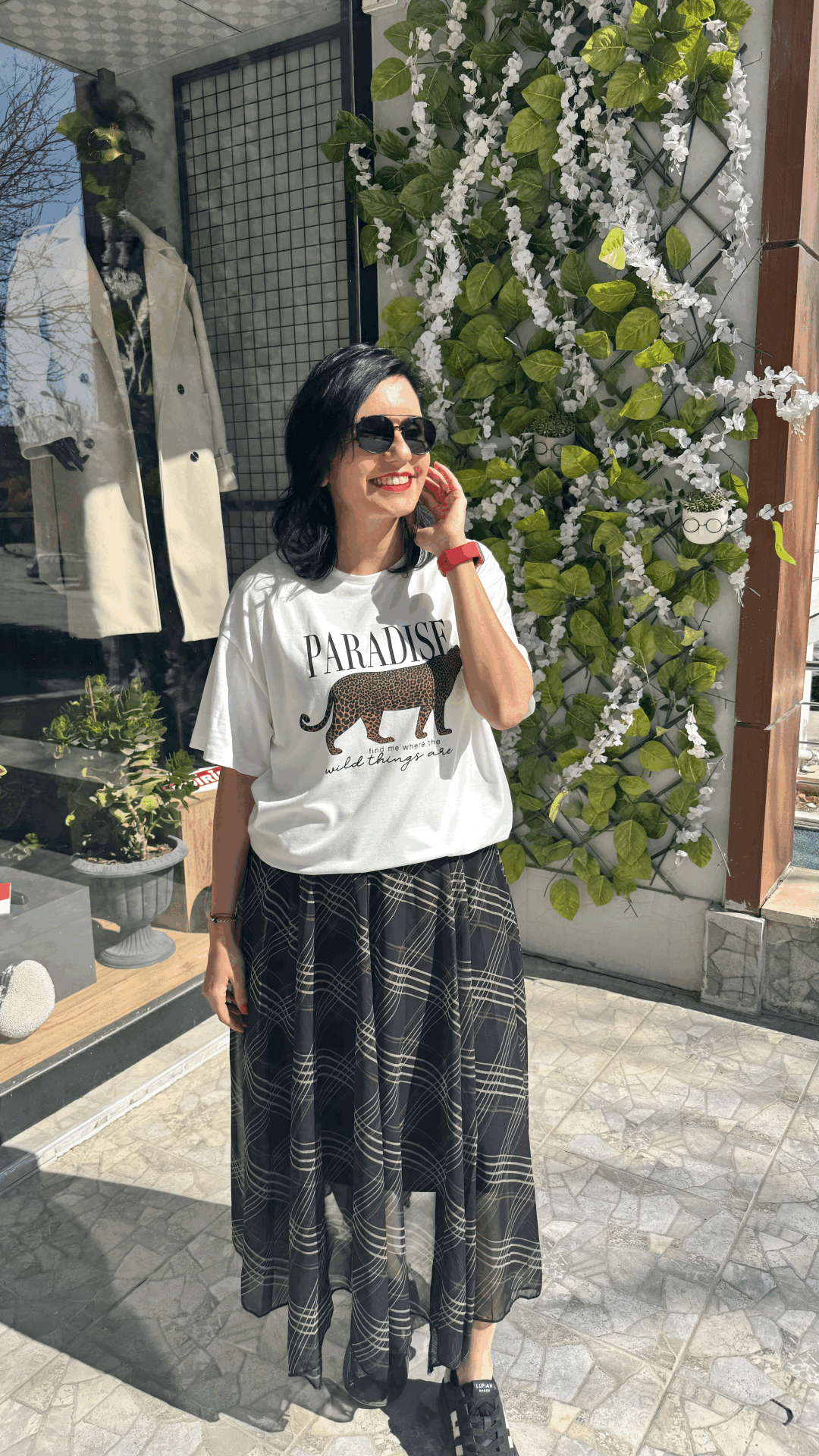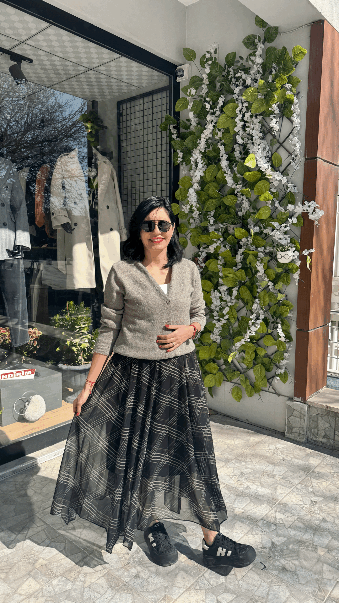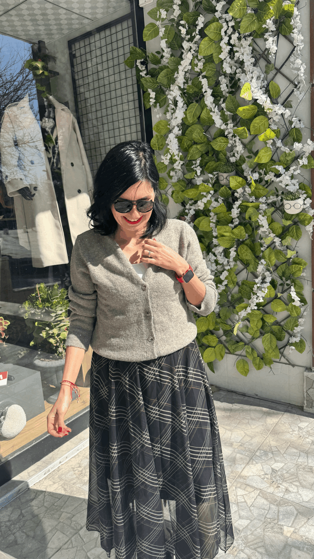 Kahve ve Bej Renkli Asimetrik Şifon Etek