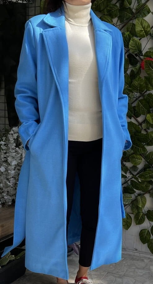 Kaşe Mavi Uzun Kaban