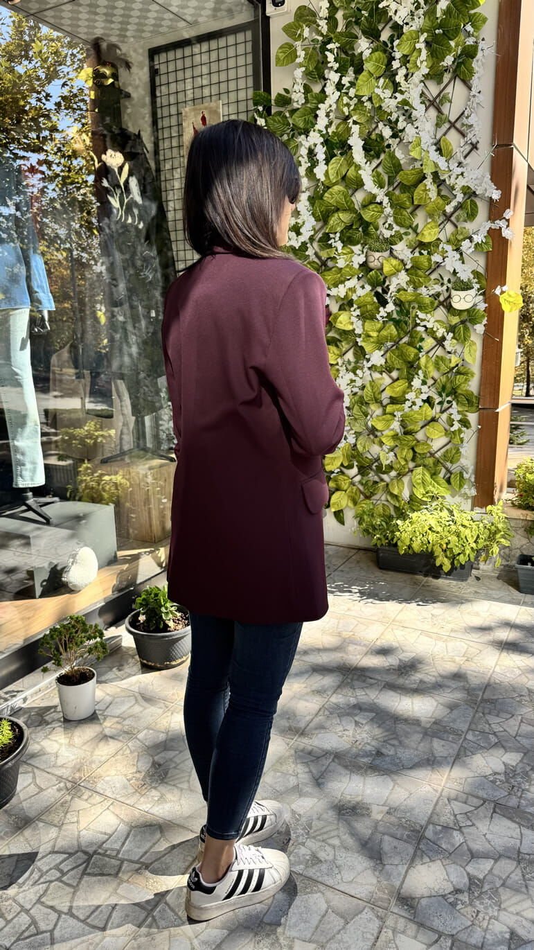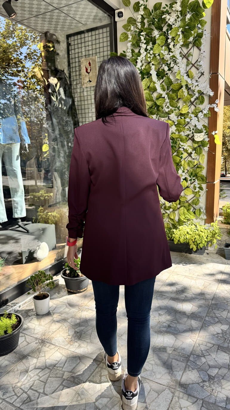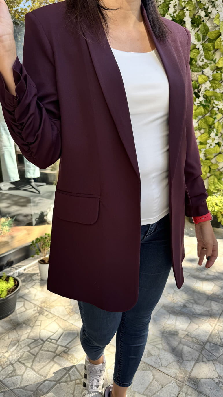 Kolu Büzgü Detaylı Atlas Kumaş Mürdüm Blazer Ceket