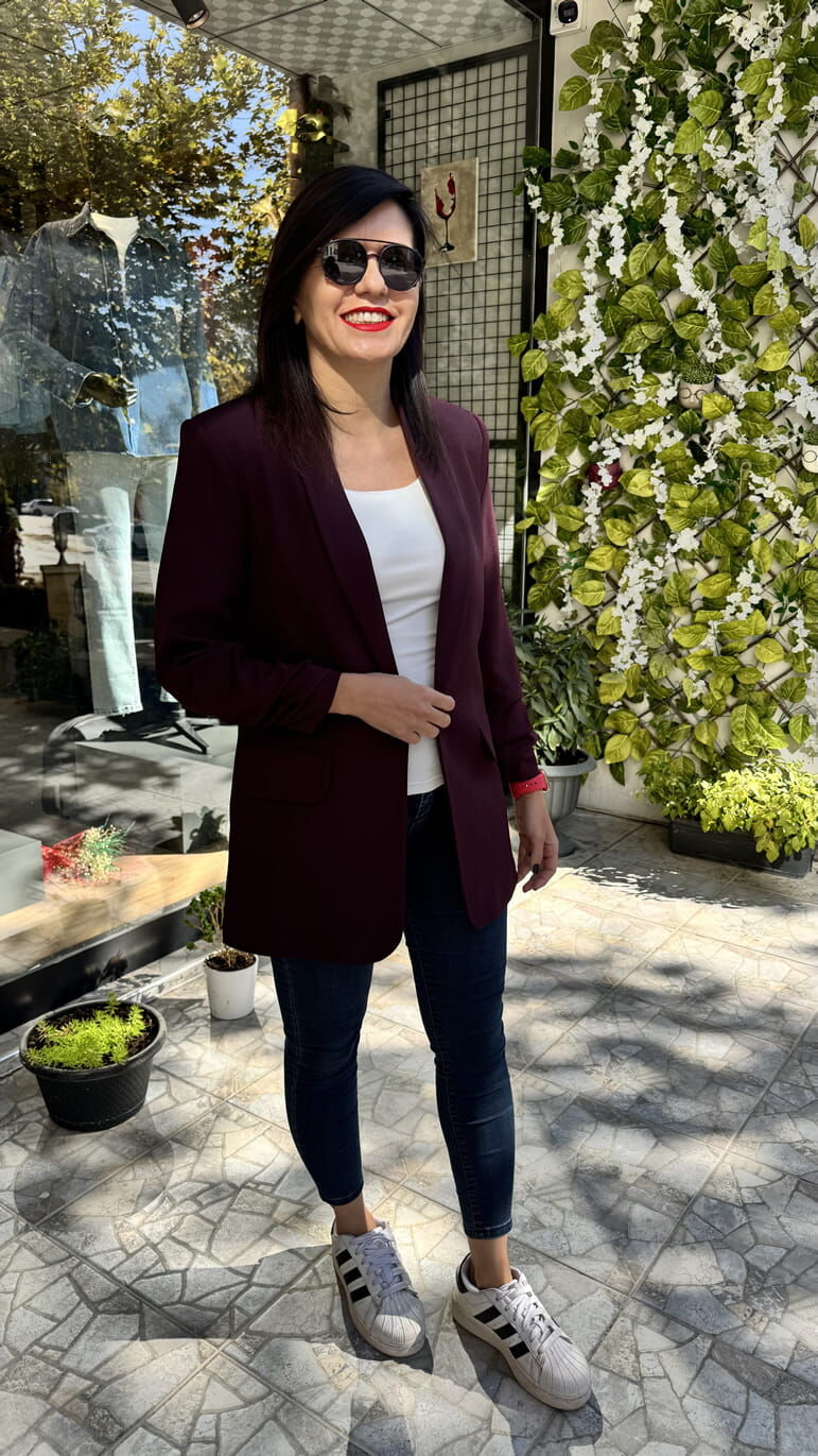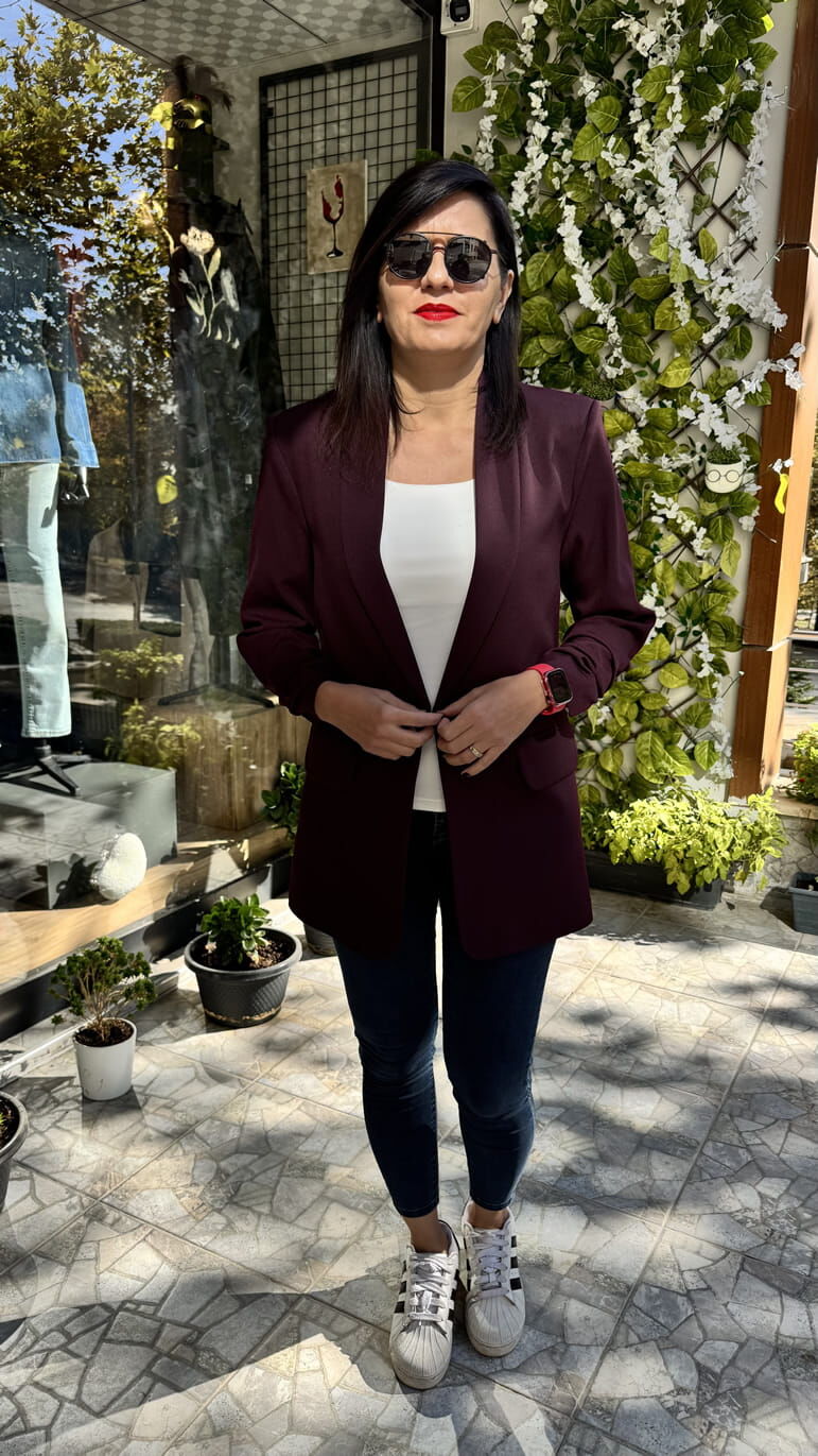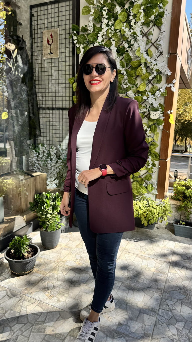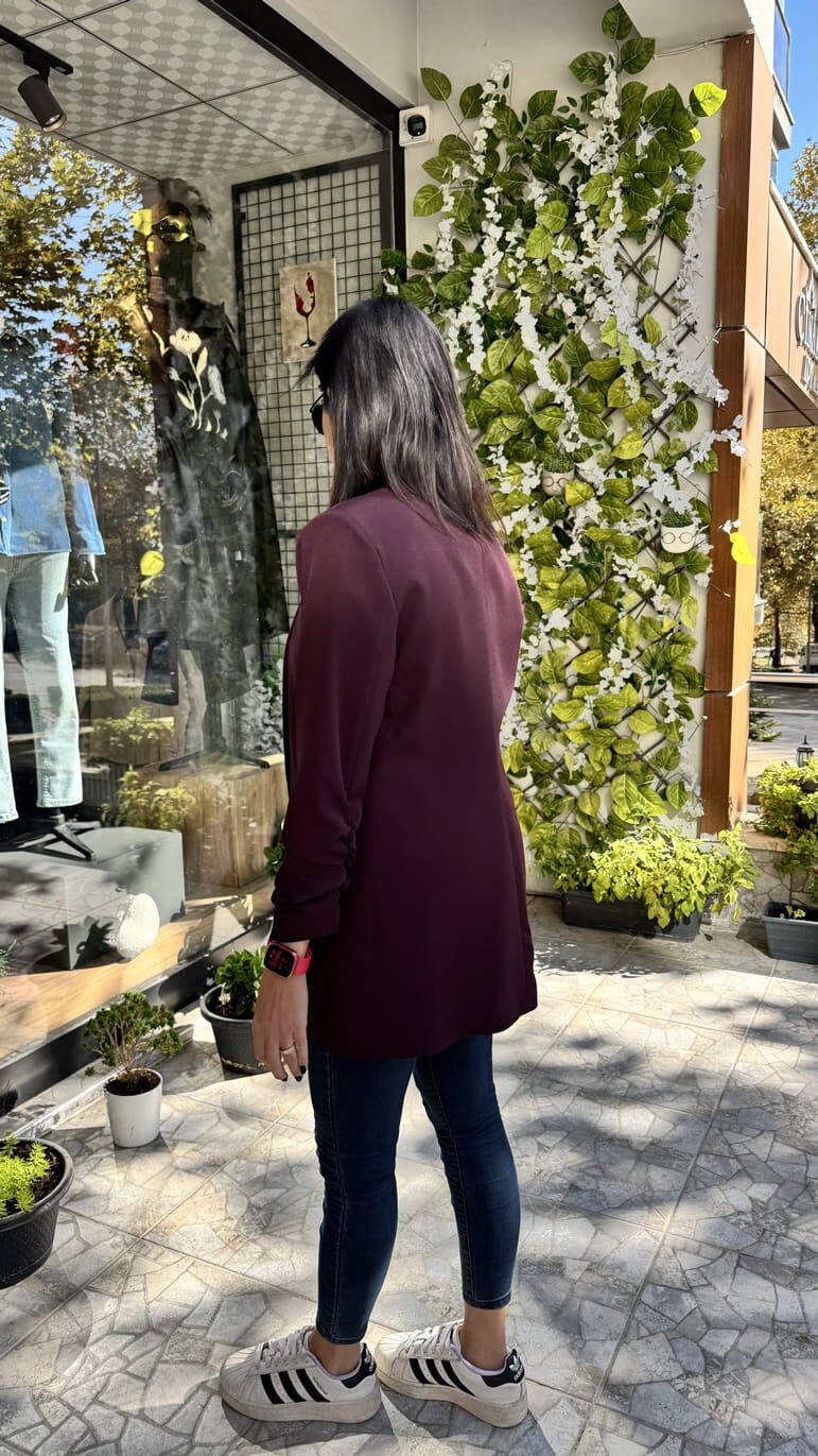 Kolu Büzgü Detaylı Atlas Kumaş Mürdüm Blazer Ceket