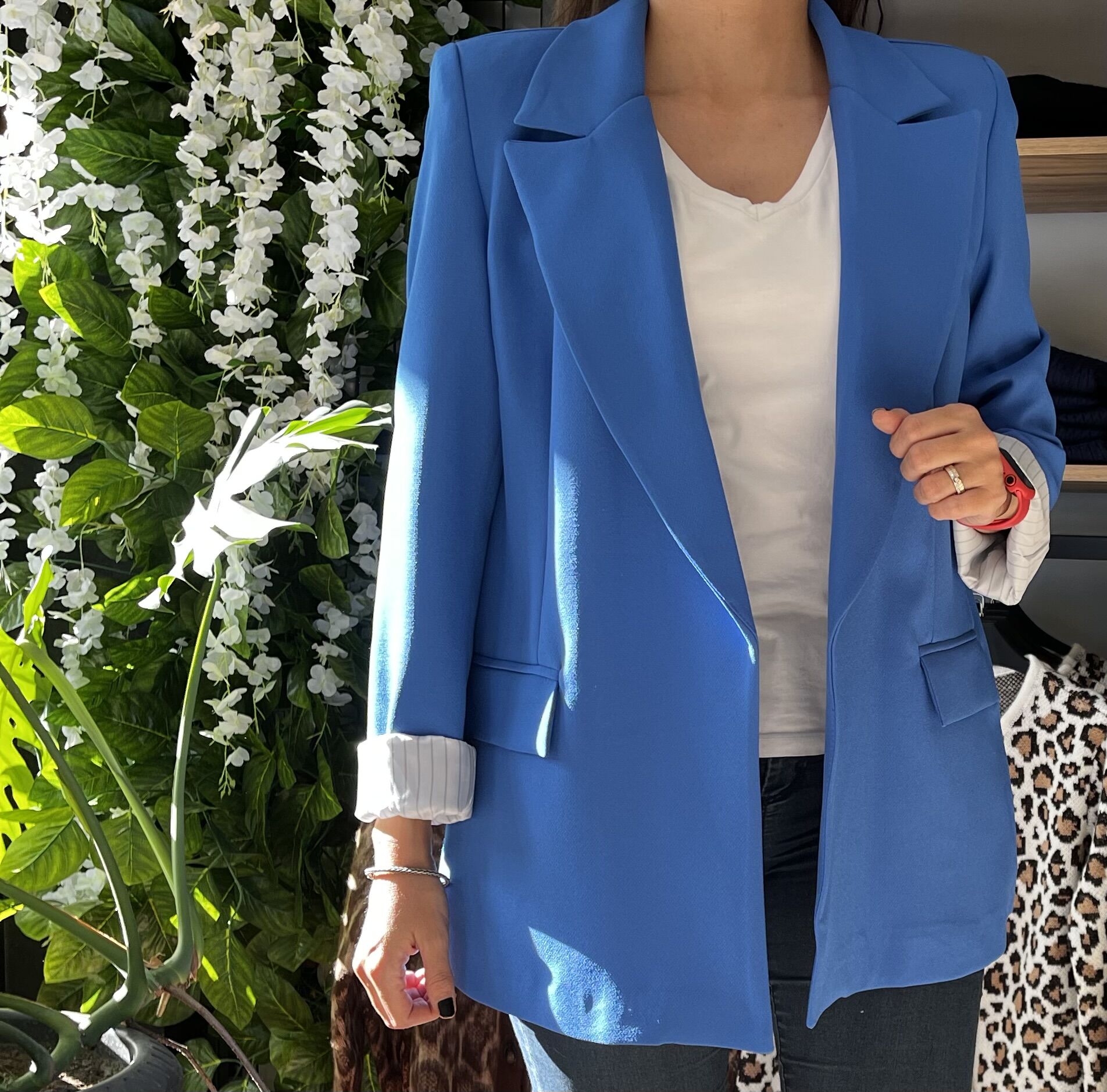 Kolu Katlı Mavi Oversize Blazer Ceket