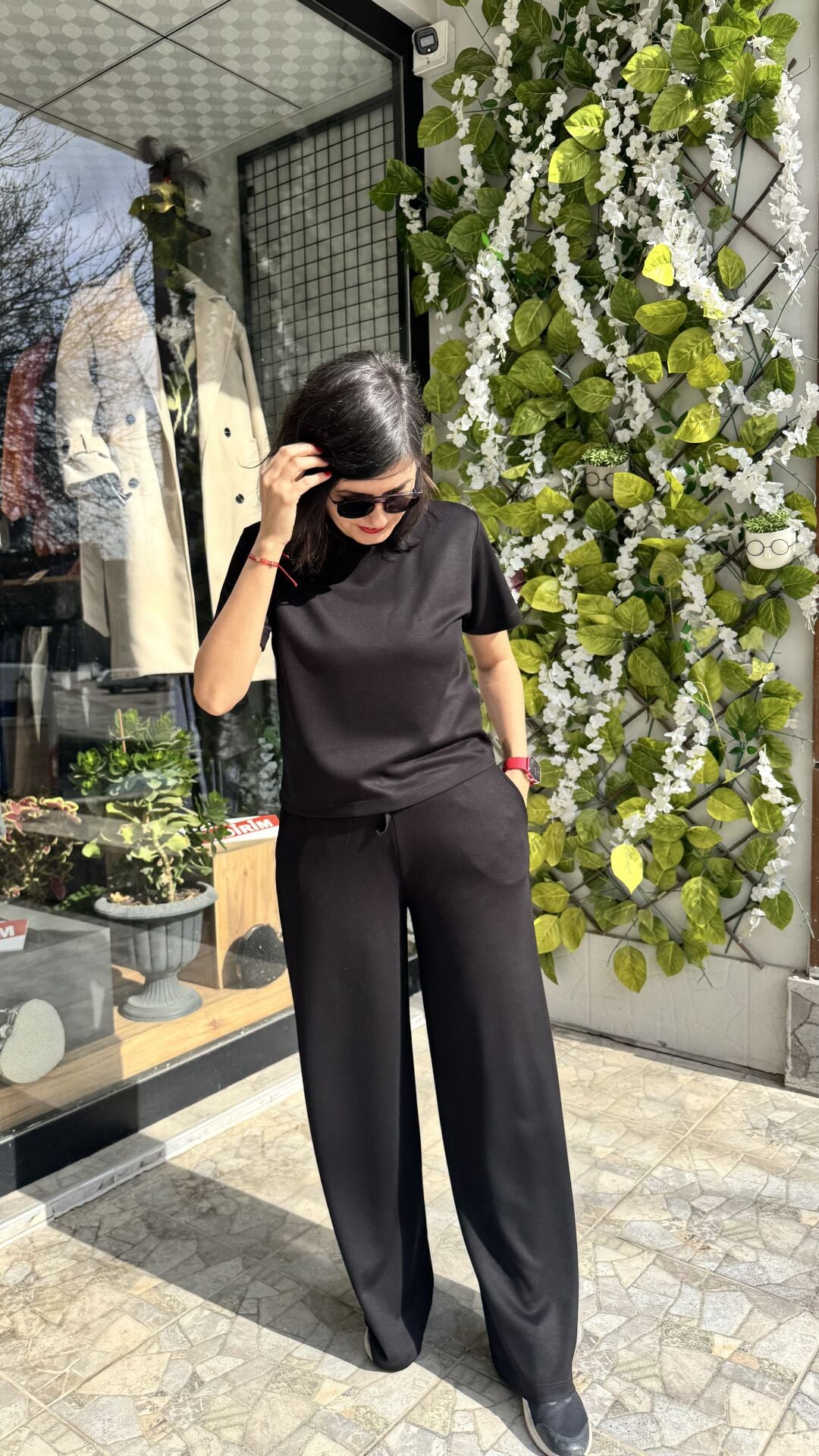 Modal Kumaş Siyah Rahat Kalıp Yuvarlak Yaka Paçası Geniş Kısa Kollu Eşofman Takım