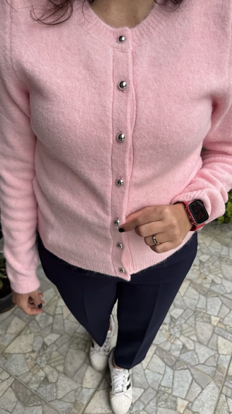 Pembe Triko Bisiklet Yaka Kısa Hırka