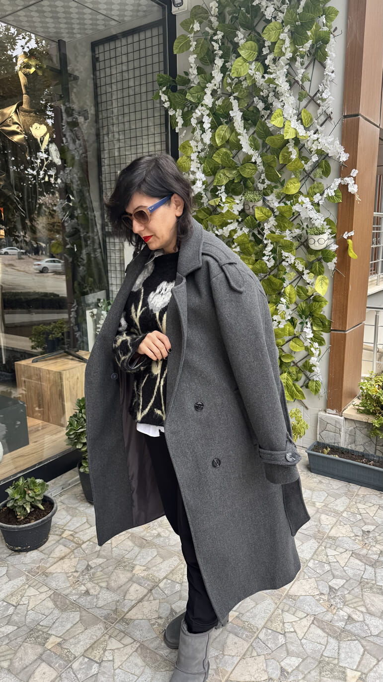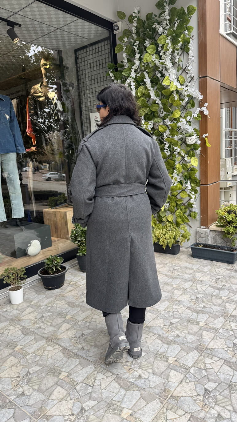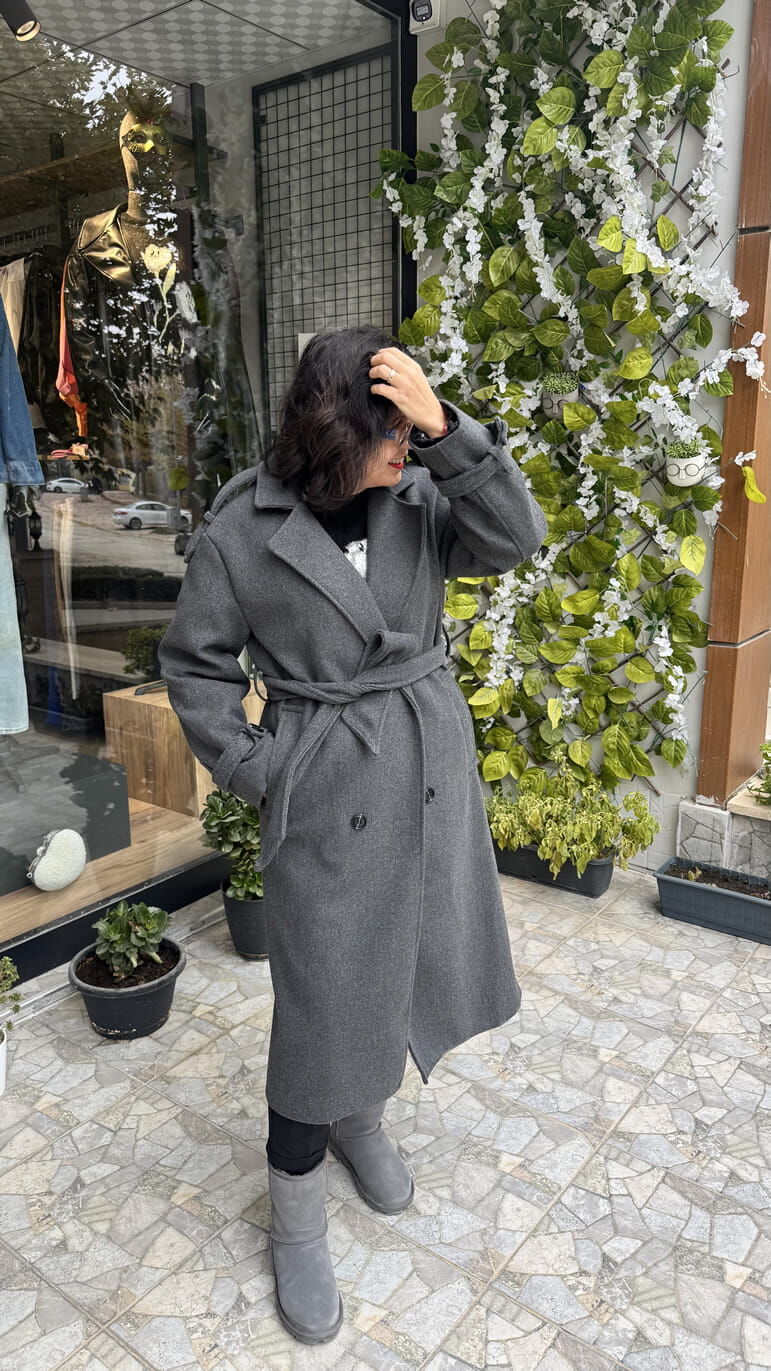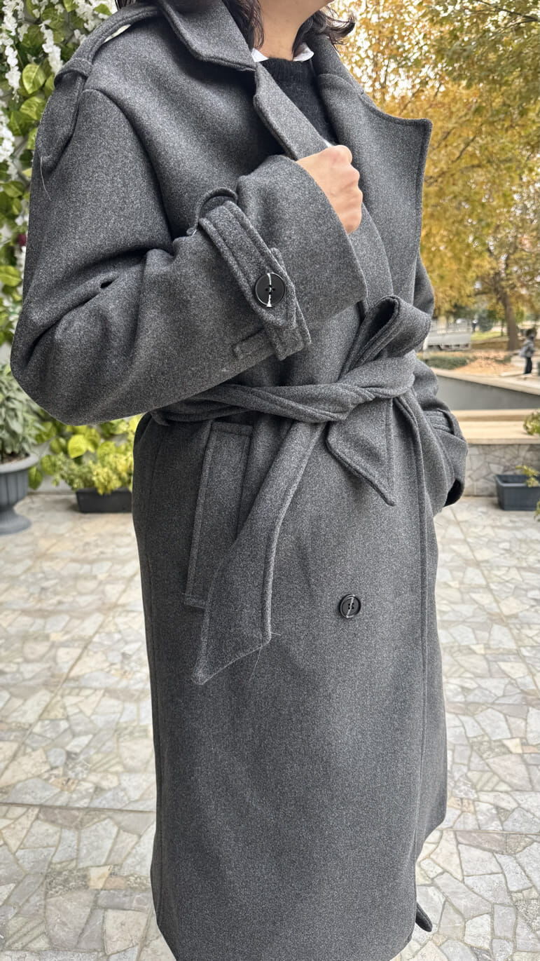 Premium Kalite Apolet Detaylı Antrasit Kaşe Kaban