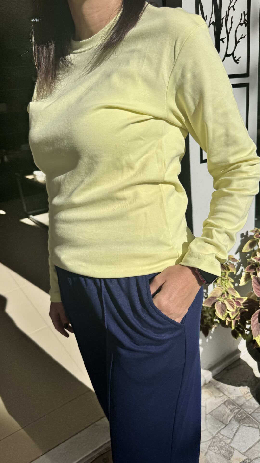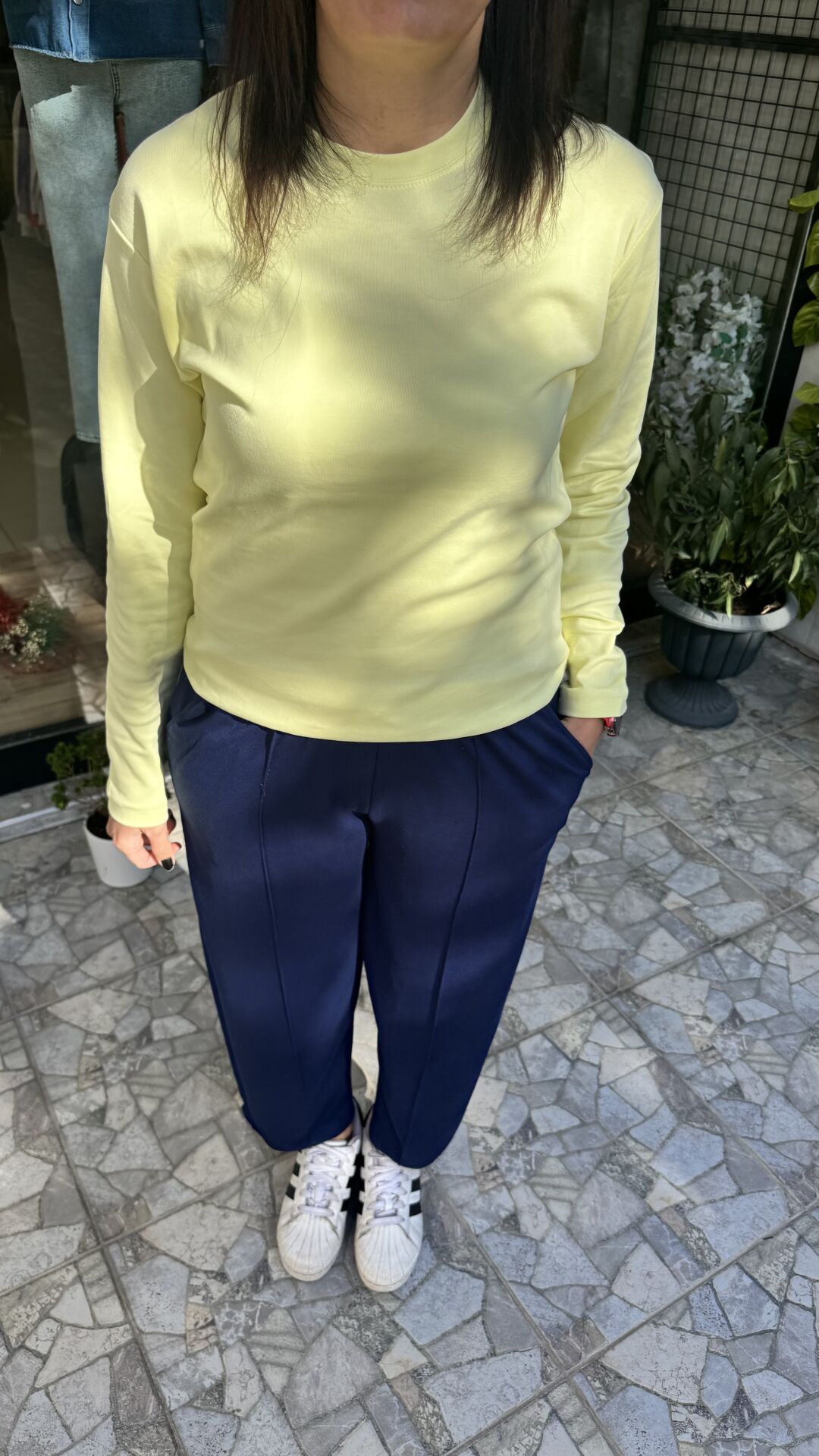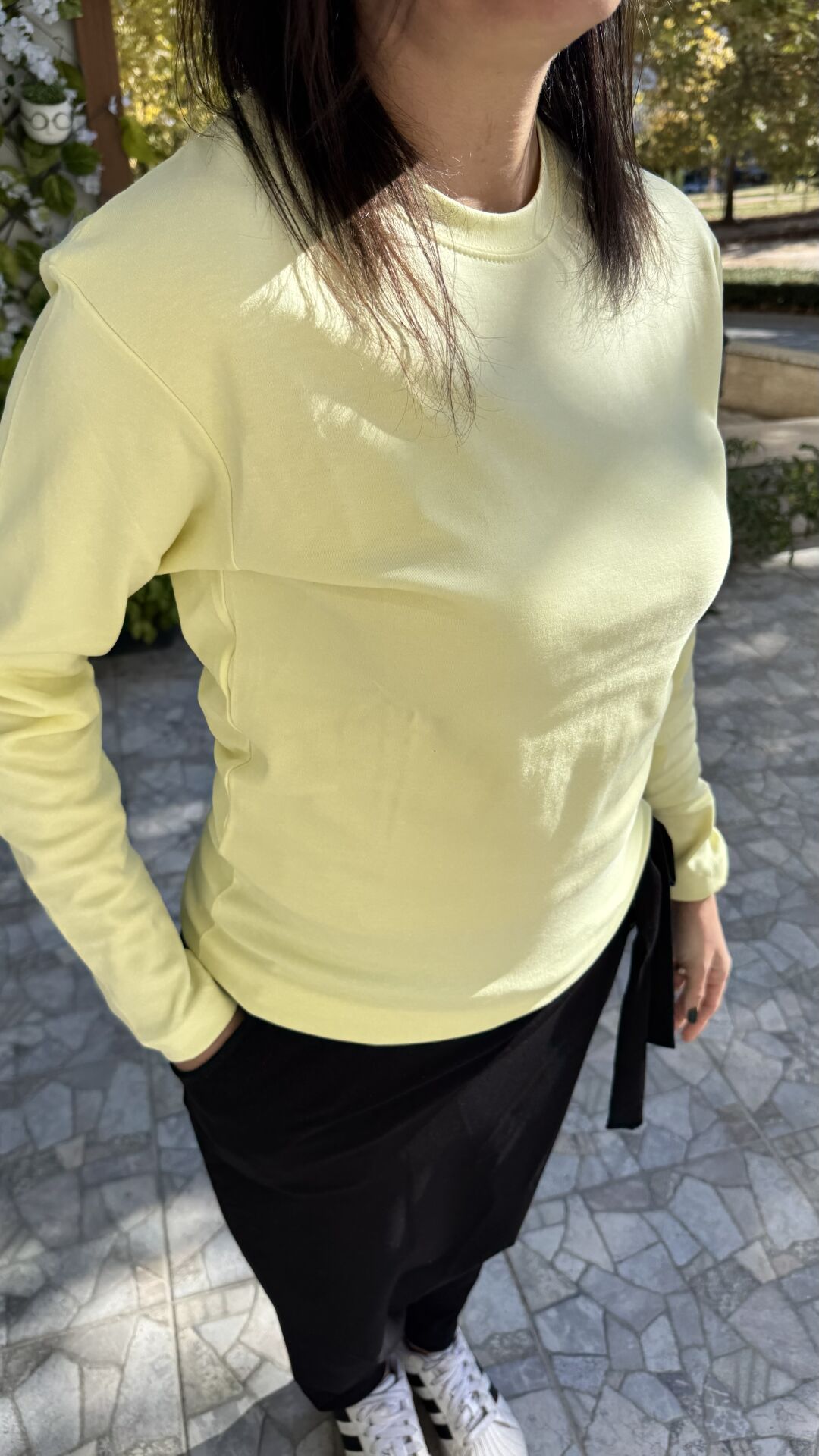 Sarı Basic Rahat Kalıp Bisiklet Yaka Body