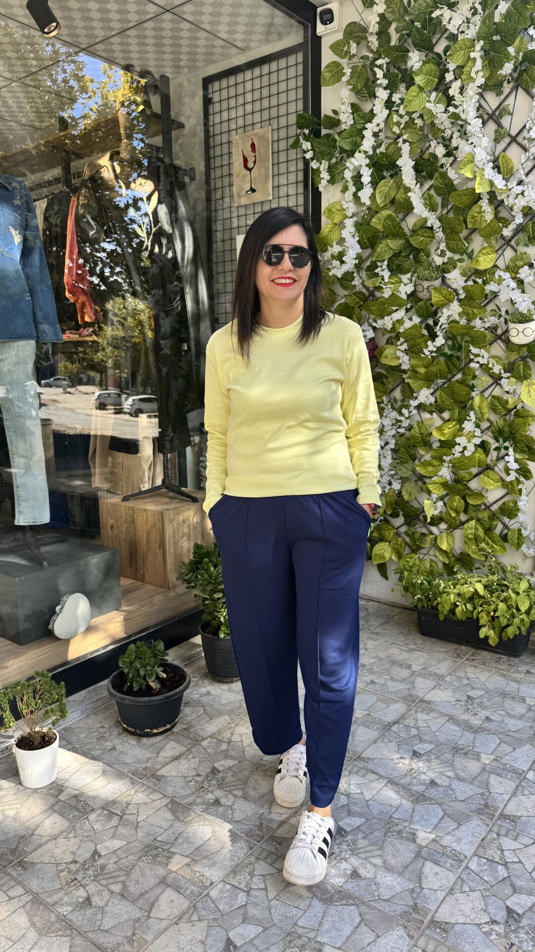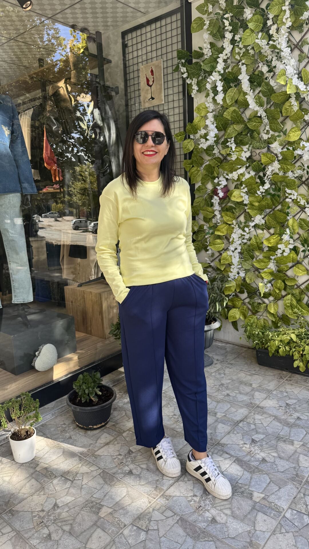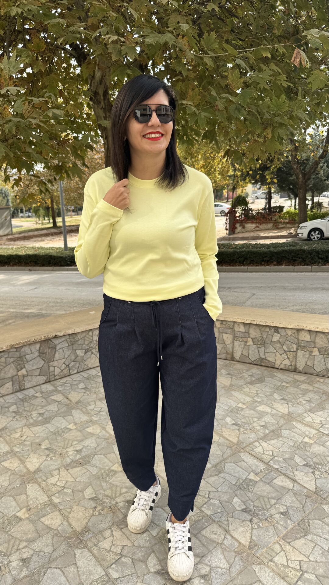 Sarı Basic Rahat Kalıp Bisiklet Yaka Body