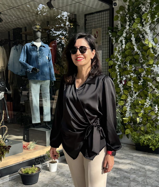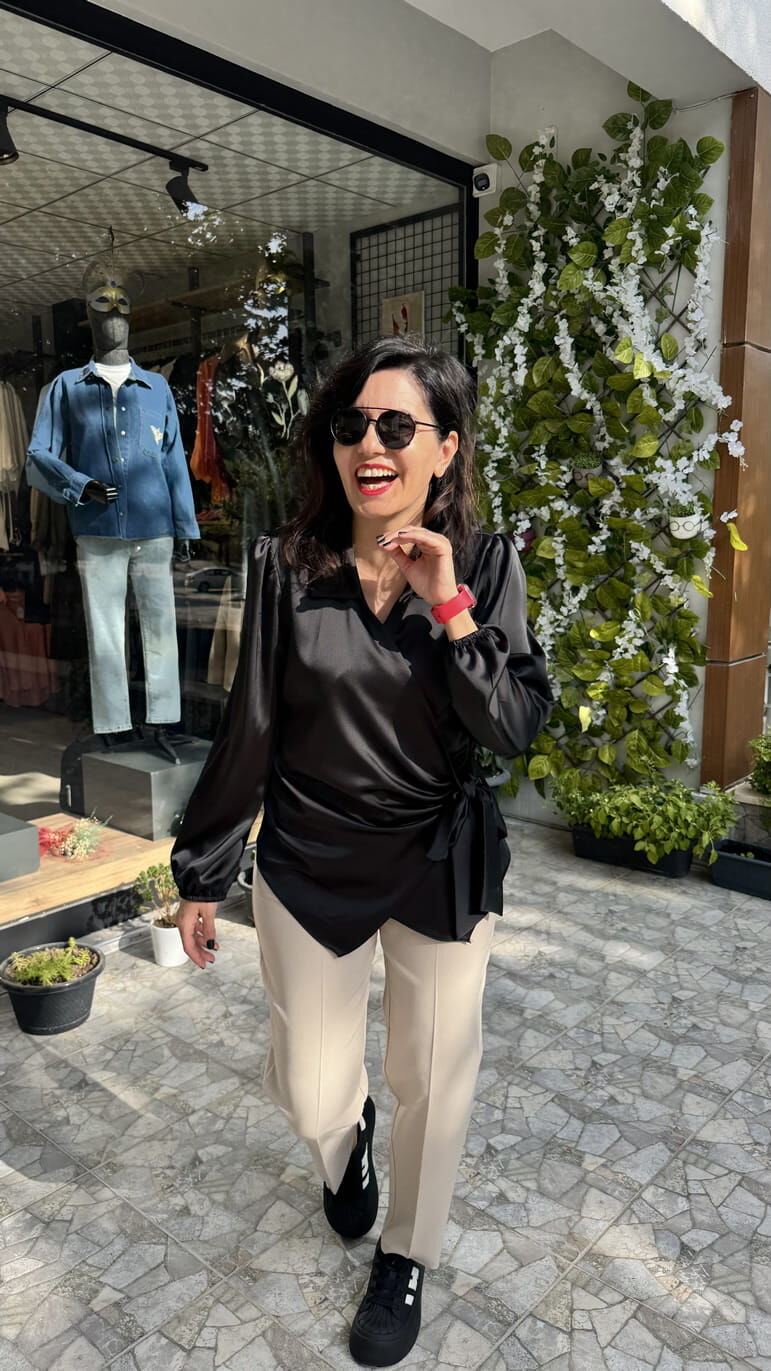 Saten Yandan Bağlamalı Siyah Gömlek