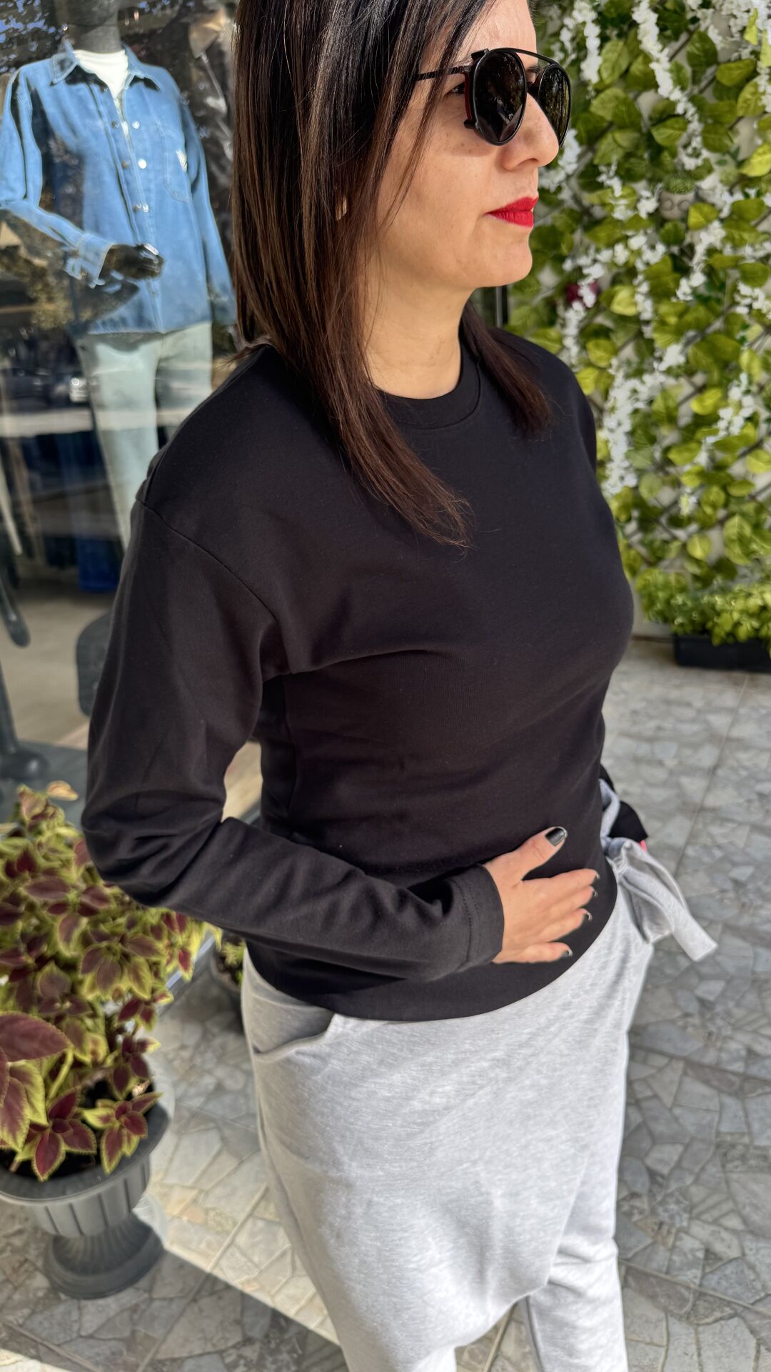 Siyah Basic Rahat Kalıp Bisiklet Yaka Body